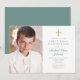 Convite à Primeira Comunhão de Foto da Cruz Verde Elegante Personalizada