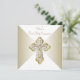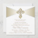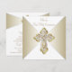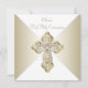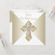 Convite de Primeira Comunhão Branco e Dourado com uma cruz dourada elegante em diamante sobre um belo fundo dourado e branco. Você pode personalizar facilmente este convite dourado de Primeira Comunhão adicionando os detalhes do seu evento no tamanho e cor da fonte e na redação de sua escolha. Você também pode alterar a cor do fundo.
