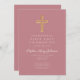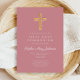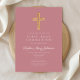 Cartão de Convite à Primeira Comunhão Personalizado Moderno Rosa Cruzado Religioso