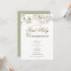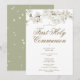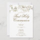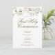 Um convite de primeira comunhão elegante que apresenta delicadas flores brancas emoldurando os detalhes da sua primeira comunhão em tipografia dourada elegante. Criado por Thisisnotme©