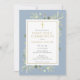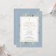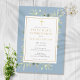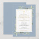 Com folhas de aquarela da floresta e um crucifixo dourado elegante, este convite moderno de primeira comunhão em azul empoeirado para menino pode ser personalizado com os detalhes da sua celebração especial. O verso tem um fundo azul empoeirado correspondente. Desenhado por Thisisnotme