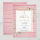 Com delicadas folhas de folhagens em aquarela sobre um fundo de madeira rústica rosa e um elegante crucifixo dourado, este convite chic para primeira comunhão pode ser personalizado com suas informações especiais. Desenhado por Thisisnotme©