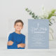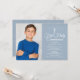 Elegante convite de primeira comunhão com delicada poeira de estrelas prateada, você pode personalizar com sua foto especial e informações do evento em texto sofisticado em um fundo azul poeirento. Projetado por Thisisnotme©