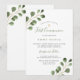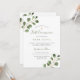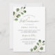 Convite minimalista moderno de menino ou menina para Primeira Comunhão com eucalipto aquarela, folhagens, folhas, galhos e cruz dourada.