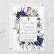 Lindo quadro floral azul em aquarela sobre fundo branco torna este convite deslumbrante! Adicione os detalhes da sua festa usando o formulário de modelo. Texto adicional pode ser adicionado no verso, se necessário, usando o recurso Personalizar.