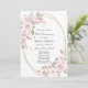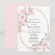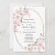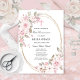 Convite de Primeira Comunhão elegante e feminino com belas rosas cor-de-rosa e flores de magnólia brancas decorando uma moldura oval dourada. Todo o texto é editável para que possa ser usado para qualquer tipo de cerimônia religiosa, Batismo, Batizado, Dedicação ou Confirmação.