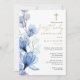 Convite Primeira Comunhão Floral Transparente Azul Poeira