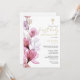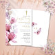 Este convite elegante de primeira comunhão floral transparente rosa empoeirado pode ser personalizado com suas informações em tipografia chic com seu monograma no verso. Concebido por Thisisnotme©