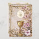 Celebrar o Sacramento da Primeira Comunhão é uma ocasião maravilhosa. Este tradicional vintage católico, desenhado por costumes, First Sagrada Communion Invitation apresenta uma bela imagem do Chalice e do Anfitrião, o Eucharista sobreposto em um quadro de ouro ornamentado, acentuado com um design floral cor-de-rosa. Todo texto e fontes podem ser modificados facilmente.