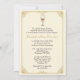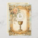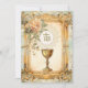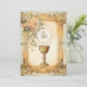 Celebrar o Sacramento da Primeira Comunhão é uma ocasião maravilhosa. Este tradicional vintage católico, desenhado por costumes, First Sagrada Communion Invitation apresenta uma bela imagem do Chalice e do Anfitrião, o Eucharista sobreposto em um quadro de ouro de ornamentado, acentuado com um design floral. Todo texto e fontes podem ser modificados facilmente.