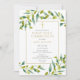 Com folhagem verde e um elegante crucifixo dourado, este convite de primeira comunhão chic pode ser personalizado com suas informações especiais. Projetado por Thisisnotme©