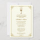 Apresentando um belo costume projetado para o Primeiro Sagrado Convite Comunitário com uma bela imagem do Criança Jesus rezando com o Eucarista abaixo. No verso do convite está um cálice de ouro e hospedeiro enfatizando o sagrado dessa ocasião alegre.