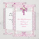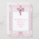 Convite Primeira Comunhão Menina Rosa Laço de Renda Branco