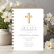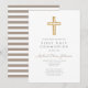 Convite Primeira Comunhão Moderna de Taupe Cross Boy