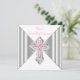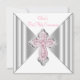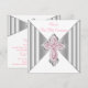Convite de Primeira Comunhão rosa e prata para meninas com uma cruz de diamante rosa e prata elegante em um belo fundo prata e branco. Você pode personalizar facilmente este convite de Primeira Comunhão rosa adicionando os detalhes do seu evento no tamanho e cor da fonte e na redação de sua escolha. Você também pode alterar a cor do fundo.