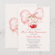 Convite Primeira Comunhão Rosa Laço Cereja