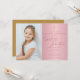 Com a sua foto especial e assinatura elegante em nome de script sobre um fundo de ouro rosa. Personalize com as informações da sua primeira comunhão em letras elegantes neste design sofisticado. Concebido por Thisisnotme©