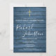 Convite Primeira Comunhão Rústica Azul em Script com Madei
