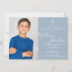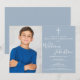 Com sua foto especial e assinatura do nome em um fundo em azul poeirento. Personalize com as informações da sua primeira comunhão santa em letras elegantes neste design elegante. Criado por Thisisnotme©