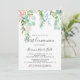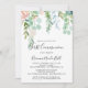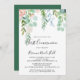 Este colorido convite à primeira comunhão floral tropical é perfeito para um evento religioso moderno. Os design ilustram flores brancas, amarelas, cor-de-rosa, pinceladas com lindas folhas verdes de cor aquosa, inspiradoras elegância.