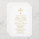 Perfeito para o primeiro convite da sua filha, esta design é simples e pura com uma cruz de ouro falsa em um fundo branco com uma fina borda de ouro, Abaixo estão os detalhes da sua celebração para você personalizar em uma tipografia moderna de escrita de ouro falsa. A parte traseira do cartão tem uma cruz de ouro em branco. Projetado apenas para você pela artista ©Susan Coffey.