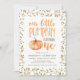 Convide convidados para a primeira festa de aniversário do seu filho com os nossos convites para a festa da Pequena Pumpkin! A primeira festa de aniversário do tema de outono convida a apresentar "nossa abóbora está girando uma" em um estilo de fonte laranja, com letra manuscrita, com uma abóbora aquarela como o "o" em uma. Os detalhes da festa de aniversário do seu filho são enquadrados por lindas folhas verdes de aquarela e flores amarelas. No verso do convite figura um design de papel kraft verde-oliva.