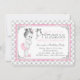 Primeira convites de festas de aniversários de princesa rosa com adorável princesa rosa menina vestindo calças roxas cor-de-rosa bonitinhas e uma bela coroa de diamante prateado em um bonito fundo tufado de diamante. Você pode personalizar facilmente este doce convite de aniversário de princesa rosa para seu evento simplesmente adicionando seus detalhes no estilo de fonte de sua escolha. Você também pode alterar a cor de fundo. Este é um design impresso sem diamantes reais, brilho, rendas, etc.