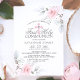 Design floral rústico simplesmente elegante em buquê de aquarela (cor d'água) verde pastel, cor-de-rosa-pincel, rosa, rosas de flores brancas/flores de cereja em fundo branco e letras de cinza escuras. Delicar os convites da Primeira Comunhão para a menina. Cruz com diamante falso no meio.