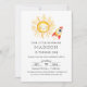 Celebre a primeira viagem ao redor do Sol com um toque personalizado! Este convite personalizado apresenta um charmoso design com tema espacial com um sol brilhante, foguetes e elementos celestes, fazer perfeito para uma primeira festa de aniversário fora deste mundo. Adicione sua foto favorita do bebê, personalize o nome, a data e os detalhes do evento para criar um convite exclusivo e memorável. Impresso em papel de alta qualidade, este convite dá o tom para uma celebração divertida e cósmica com a família e os amigos!
