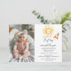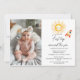 Celebre a primeira viagem ao redor do Sol com um toque personalizado! Este convite personalizado apresenta um charmoso design com tema espacial com um sol brilhante, foguetes e elementos celestes, fazer perfeito para uma primeira festa de aniversário fora deste mundo. Adicione sua foto favorita do bebê, personalize o nome, a data e os detalhes do evento para criar um convite exclusivo e memorável. Impresso em papel de alta qualidade, este convite dá o tom para uma celebração divertida e cósmica com a família e os amigos!