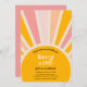 Convite de aniversário com uma armação com raios solares. Personalize com suas informações para a aniversariante. Clique em "clicar para personalizar mais" para alterar o estilo, o tamanho ou a cor da fonte.
