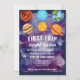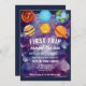 Tire isso dessa festa mundial em estilo com esses convites de festas de primeiro aniversario 'Primeira viagem ao redor do Sol'. O convite pode ser personalizado com a inclusão do seu nome, data da festa e local e detalhes do rsvp. O design é tema espacial, tema popular para aniversários de marco.