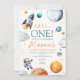 Vá a uma aventura espacial para o primeiro aniversário do seu bebê! Este design charmoso e colorido mostra tudo que um menino sonha — naves espaciais, planetas, estrelas e, claro, astronauta. As cores vibrantes e a incrível paisagem cósmica impressionam a todos. Tornar este dia especial inesquecível!