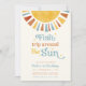 Este adorável convite de vassoura apresenta um sol de aquarela, colocado contra um fundo branco suave. As cores muda de amarelo, laranja e azul combinadas com a fonte retrorativa adicionam uma sensação encantadora de 70 s. Totalmente personalizável com seus detalhes, este convite é perfeito para comemorar o marco do seu filho.