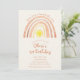Um convite de 1º aniversário fofo, apresentando um arco-íris e sol em aquarela boho. Criado por Thisisnotme©