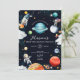 Descendam-se para uma celebração de primeiro aniversário com este convite estelar da aventura espacial! Apresentando um encantador astronauta plantando uma bandeira na lua, um legal foguete, e planetas vibrantes espalhados por uma galáxia estrelada, esta design capta perfeitamente o entusiasmo de uma "primeira viagem ao redor do sol". É uma maneira ideal de convidar convidados para uma primeira festa de aniversário memorável e divertida para o seu pequeno explorador. Prepare-se para uma celebração fora deste mundo!