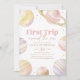 Celebre a chegada de um pequeno com este elegante convite de aniversário rosa, roxo e dourado para o espaço sideral.