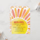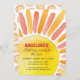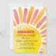 Celebre a primeira viagem de cheio do seu bebê ao redor do aniversário do sol com uma moderna cor d'água e um design de raios. Dê a sua pequena luz do sol uma festa de primeiro aniversario divertida e fofa. Simplesmente personalize para torná-lo seu próprio - design neutro em termos de gênero, perfeito para rapazes e raparigas! A cor da fonte também pode ser alterada no editor.