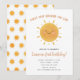 Convite de primeiro aniversário, apresenta um sol fofo e é perfeito para o tema da Primeira Volta ao Sol. Edite todo o texto para o seu evento.