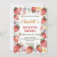 Convite Primeiro aniversario arco-íris de morangos brancos