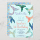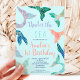Convite Primeiro aniversario azul brilhante da sereia dour