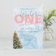 Convite Primeiro aniversario azul de neve da árvore do inv