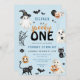 Comemore com estes convites de primeiro aniversario de Dia das Bruxas "Spooky ONE", divertidos e modernos. Este primeiro aniversario moderno apresenta fantasmas pintados manualmente de aquarelas, gatos pretos, abóboras, morcegos e teias de aranha. Padrão de Halloween no fundo. Você pode personalizar o texto, o estilo da fonte, a cor e o tamanho em frente e atrás do convite. Por favor, foi livre de me contactar para encontrar itens correspondentes.