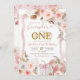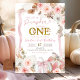 Boho Coquette Pumpkin Rosa, Boho White e Pumpkin Rosa Primeiro Convite De Aniversário, Nossa Pequena Pumpkin Está Virando Um primeiro aniversario De Cogumelo Editável E Convidável