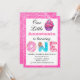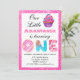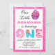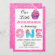 Garota e doce Cupcake rosa brilhante primeiro convite de aniversário com rosquinhas e doces. Adicione facilmente o nome do cheio e a data, hora e endereço da festa de aniversário. Perfeito para uma doce princesa virar uma!