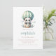 Este belo primeiro convite de aniversário apresenta um doce panda de aquarela em um balão de ar quente verde-menta cercado por nuvens e flores cor-de-rosa, acima das palavras "junte-se a nós para a primeira festa de aniversário de [nome]!" em letras itálicas marrons. Personalize-o com o nome do seu filho em letras esboçadas em verde-menta, com os detalhes em fontes sans serif castanhas em um fundo branco. Ideal para panda, aventura, viagem ou balão de ar quente de uma garota, a primeira festa de aniversário.