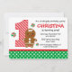 O design bonito do primeiro aniversario do Natal com um bastão de doces listrou o número 1, a menina pequena adorável do pão-de-espécie e doces de peppermint listrados vermelhos e verdes. Original de PinkInkArt!.