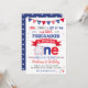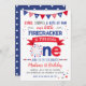 4 de julho primeiro aniversario Convite Vermelho Branco e Azul Firecracker Estrelas Patrióticas Strips