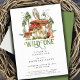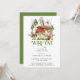 Um tema selvagem encantou o convite de primeiro aniversario de florestas para rapazes ou raparigas. Cogumelos gigantes mágicos, animais florestais e árvores, convite à aquarela. Verde sólido no fundo do convite.