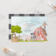 Este bonito tema de fazenda neutro por sexo, 1rua/primeiro convite de aniversário, apresenta um porco, ovelha, vaca, e um pato com um celeiro vermelho, moinho de vento e fardo de feno com aquarela. O verso apresenta um fundo branco com verificações de gingham/búfalos pretos. Personalize para suas necessidades. Você pode encontrar produtos correspondentes na minha loja.